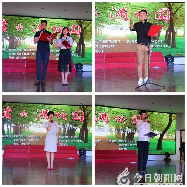 最后進行的“大美朝陽”朗誦,更是精彩迭出:昝祝、劉欣激情朗誦了秦朝暉的《感受遼西》,李欣、左笑然等朗誦了秦朝暉的《書香朝陽》,張力、馬海欣等朗誦了韓輝升的《朝陽暢想曲》。