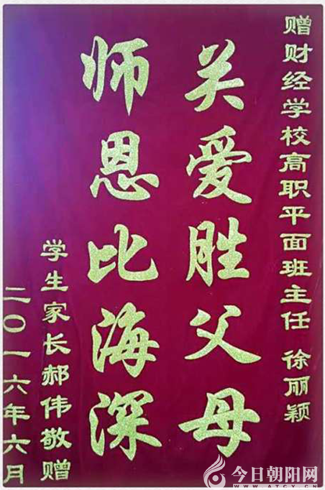 近日,一面寫有“關(guān)愛(ài)勝父母,師恩比海深”字樣的錦旗送到了財(cái)經(jīng)學(xué)校。錦旗背后的故事里,講述的是一個(gè)女孩子,念高二的時(shí)候從凌源某高中轉(zhuǎn)來(lái)。剛進(jìn)班級(jí)時(shí),她的性格非常的“特”:老師與她談話,沒(méi)有好聲回答;同學(xué)開(kāi)個(gè)玩笑,她認(rèn)為存有惡意;學(xué)習(xí)不認(rèn)真,活動(dòng)躲一旁。半年多的時(shí)間里,徐老師靜下心來(lái),堅(jiān)持用“殺手锏”克她的“逆反刀”,結(jié)果顯現(xiàn)奇效。漸漸的,她變得聽(tīng)話了,性格開(kāi)朗了,和同學(xué)的關(guān)系也融洽了。更可喜的是,她學(xué)習(xí)用功了,成績(jī)有大幅度提高。孩子的轉(zhuǎn)變讓家長(zhǎng)看在眼里,喜上眉梢,感謝自然充盈心里。家長(zhǎng)在孩子畢業(yè)離校前,特意從凌源趕來(lái)。他們送來(lái)的,不僅僅是一面鮮紅的錦旗,還有對(duì)徐老師的感恩,對(duì)財(cái)經(jīng)學(xué)校的褒揚(yáng)。
