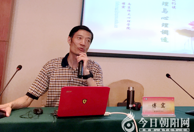 7月20日下午,南京師范大學心理學院院長、江蘇省心理學會理事長、博士生導師傅宏教授,在南京百草園賓館匯緣廳,為我們朝陽市第二批中小學名師高級研修班做了一場題為《談教師壓力管理與心理調(diào)適》的講座。講座的內(nèi)容包括現(xiàn)代生活中值得關(guān)注的一些教師心理問題,以及問題出現(xiàn)的原因和解決、調(diào)適的方法等。