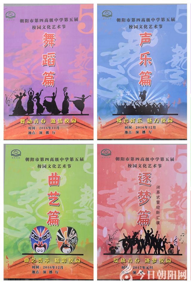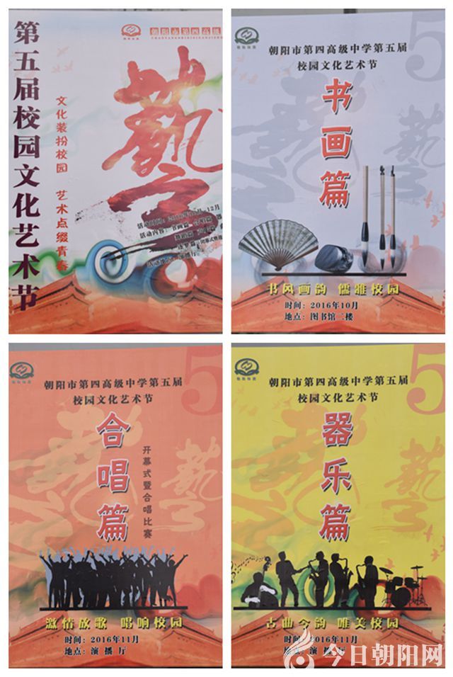 四高中舉辦第五屆校園文化藝術(shù)節(jié)的初衷主要在于:豐富校園文化內(nèi)涵,營造蓬勃向上、格調(diào)高雅、健康文明的校園文化氛圍,積極培育“德能兼?zhèn)?、藝文并遒、身心競?rdquo;的學(xué)生群體,完成“由墨香到書香,由創(chuàng)美到立美,由好基礎(chǔ)到高素質(zhì),由好習(xí)慣到高品位”的內(nèi)化,奏響青春旋律,打造魅力四高。整個(gè)活動從10月上旬開始,至12月底結(jié)束。期間,將依次進(jìn)行“書畫”“合唱”“器樂”“舞蹈”“聲樂”“曲藝”和“逐夢”共七個(gè)大板塊(篇)的活動,全校師生將全員、全程、傾情參與其中。