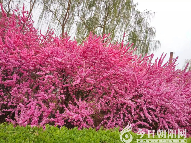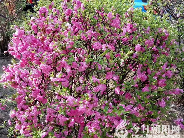 讓我們一起漫步在朝陽的大街小巷。這里,到處鮮花盛開,讓你駐足流連。粉色的榆葉梅開得那樣絢爛,它比天邊的云霞更鮮艷,比桃花更茂盛,更有生命力,像是卯足了勁似地綻放。它像年輕小伙在勁舞青春,又像妙齡少女在炫耀花季年華。連翹花展開它那夸張的葉片,努力迎接春天,像要把大自然擁入自己的懷抱。紫丁香高舉紫色花束,逢人便要炫耀“我要成為春天的主角!”