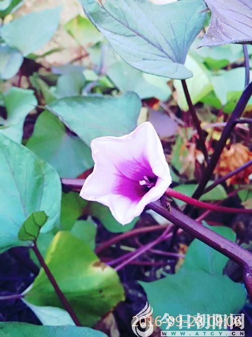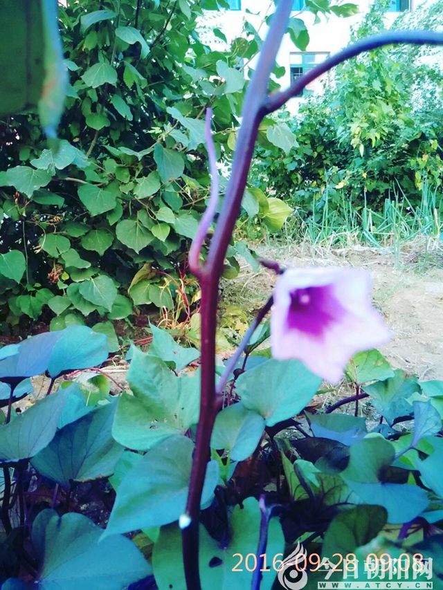 熟悉紅薯的人都知道,這種可愛的小東西全都結(jié)在土里,地表上只見瓜秧,很少看見開花的。2016年9月28日,筆者在遼寧省北票市三高中花圃里,有幸一睹紅薯開花的芳容。
