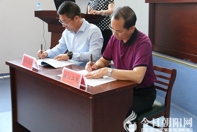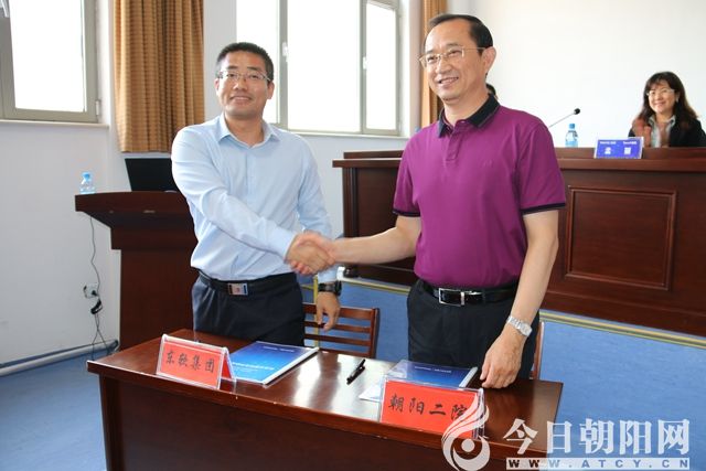 朝陽市第二醫(yī)院院長趙貴辛與東軟集團(tuán)副總裁姚勇在“信息化服務(wù)合作協(xié)議書”上簽字。