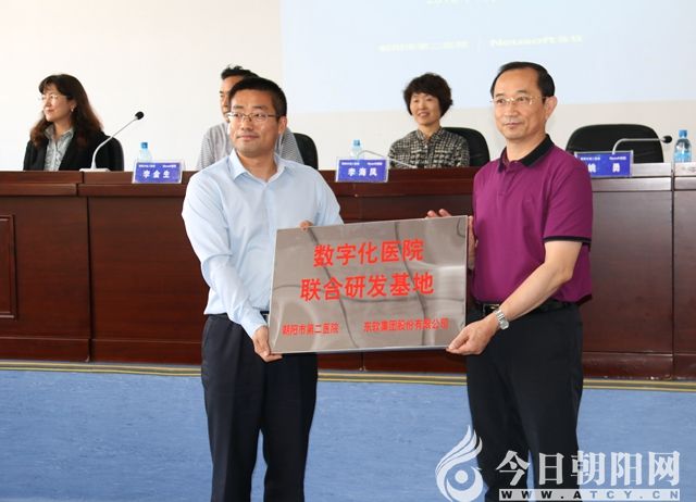 7月21日下午,遼寧省朝陽市第二醫(yī)院與東軟集團(tuán)“信息化服務(wù)合作”簽約暨遼西數(shù)字化醫(yī)院聯(lián)合研發(fā)基地落成和揭牌儀式在二院多功能廳隆重舉行。朝陽市政府副秘書長李海鳳,市衛(wèi)生計(jì)生委黨委書記、主任李金生,東軟集團(tuán)副總裁兼醫(yī)療IT事業(yè)部總經(jīng)理姚勇出席。會議由朝陽二院紀(jì)委書記李亞琴主持。