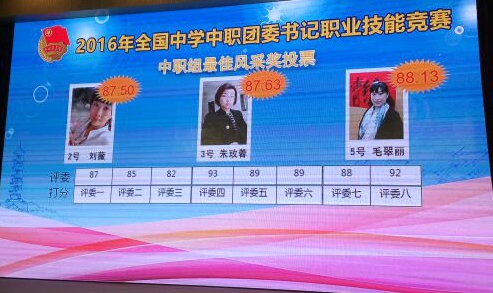 11月30日,由團中央學(xué)校部主辦、共青團海淀區(qū)委教育工委承辦的2016年全國中學(xué)中職學(xué)校團委書記職業(yè)技能競賽決賽,在北京理工大學(xué)附屬中學(xué)如期舉行。來自全國各地中學(xué)組和中職組的參賽選手們,通過專家評審和大眾評審?fù)镀?,產(chǎn)生了中學(xué)組和中職組冠、亞、季軍。經(jīng)過激烈角逐,來自遼寧朝陽工程技術(shù)學(xué)校的團委書記毛翠麗,一舉斬獲中職組冠軍。