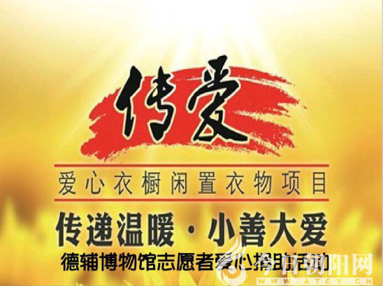 2016年1月23日,由遼寧省朝陽市德輔博物館發(fā)起的舊衣物捐贈(zèng)活動(dòng)在德輔博物館舉行?,F(xiàn)場(chǎng)共計(jì)收集志愿者捐贈(zèng)衣物200多件,德輔博物館館長(zhǎng)捐款購(gòu)買文具用品百余件,志愿者們對(duì)捐贈(zèng)物品進(jìn)行了初步整理歸類,氣氛熱烈。此次活動(dòng)不僅在博物館志愿者中激發(fā)了捐贈(zèng)衣物、奉獻(xiàn)愛心的公益大潮,更是引起了社會(huì)的廣泛關(guān)注,帶起一場(chǎng)公益與慈善完美結(jié)合的愛心之旅。
