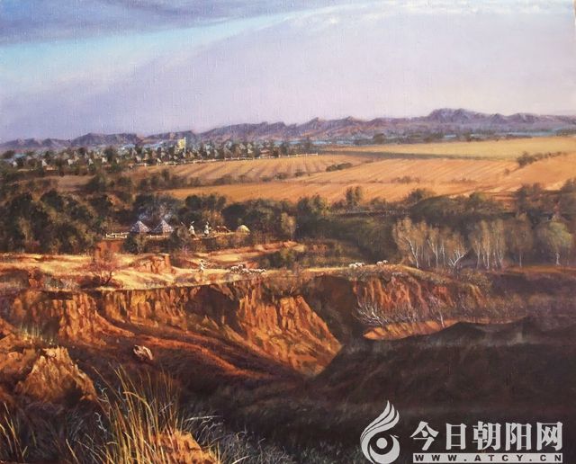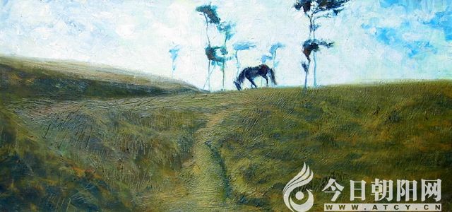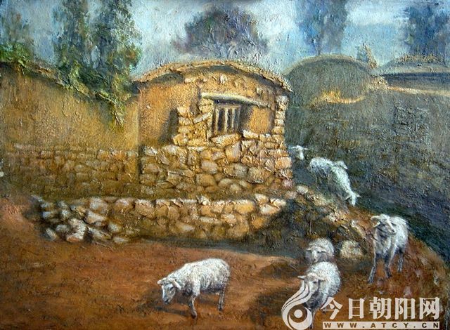 于是,我們有理由一讀他的畫了。讀他的畫,尤如面對(duì)他這個(gè)人,樸素內(nèi)斂、溫厚真誠,沒有所謂大題材、大場面,也沒有遠(yuǎn)在千里之外與我們的生活和情感八竿子打不著的異域風(fēng)光,只有他所熟悉的遼西土地。乍一看,也許你會(huì)略感熟悉,仿佛那兒時(shí)的家鄉(xiāng)就在身旁依稀可見。村口的揚(yáng)長小巷,晨時(shí)的裊裊炊煙,村里的成群牛羊,無一例外,這就是地地道道的農(nóng)村味道。