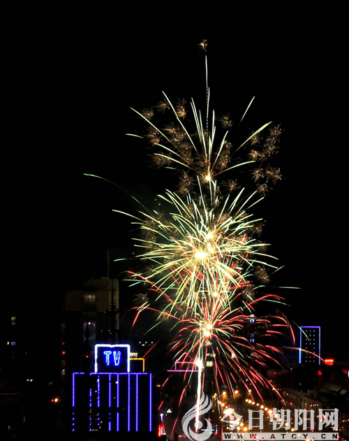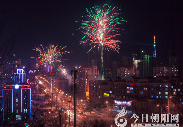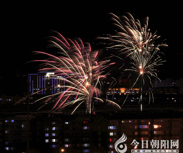 隨著街燈和小區(qū)住戶的燈光逐漸亮起,鞭炮聲便不時(shí)的響起來(lái),人們開(kāi)始“祭星”了。不一會(huì)絢爛的煙花便在全城的每個(gè)角落里不時(shí)地升騰而起,我們幾位攝友也為這一時(shí)刻的到來(lái)而歡欣鼓舞,都想用手中的相機(jī)來(lái)留住這美麗的精彩瞬間。