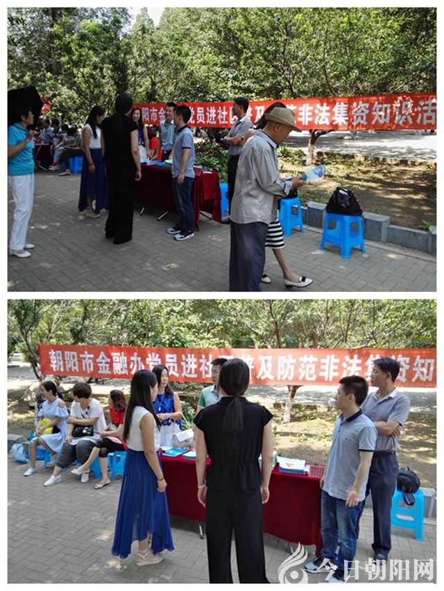 朝陽市金融辦黨員干部不顧高溫炎熱,在市府門前擺開宣傳陣地,向過往市民發(fā)放《朝陽市防范和處置非法集資宣傳資料》、《防范打擊非法集資違法犯罪活動社會宣傳冊》等宣傳材料。遇到市民詢問有關(guān)情況,該辦工作人員馬上為其詳細(xì)解答。面對比較復(fù)雜的問題,他們自覺聚攏在一起,不顧汗流浹背,連說帶比劃,直到市民聽明白了、面帶笑容離開為止。