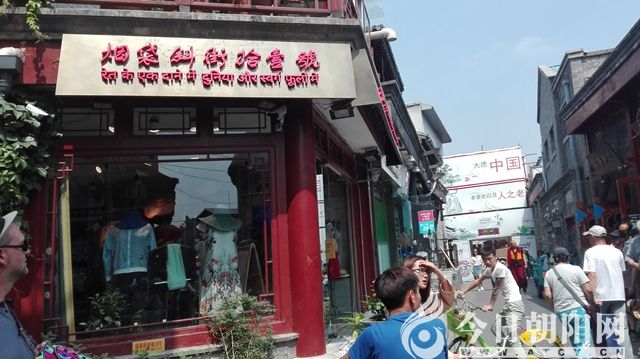 漫步在什剎海岸邊柔枝拂地的綠楊蔭下,我們沿東北方向邊走邊尋。忽然,煙袋斜街的名字赫然入眼。據(jù)說在大清乾隆年間,居住此地的全是提籠架鳥愛好抽煙的旗人。他們好把煙葉裝在煙袋中,侃五說六地吞云吐霧。這就導(dǎo)致了人們對煙袋的需求的與日俱增,斜街上也就相繼地開起了售賣煙袋的鋪?zhàn)印H缃?,煙袋鋪?zhàn)釉缫咽幦粺o存,取而代之的是諸如爆肚、羊腸、炒肝之類的小吃以及各種服裝小百。最有意思的是在這青磚斑駁的古街上,竟然還開設(shè)了幾家黑加侖奶茶與星巴克咖啡之類的飲品店。這土洋結(jié)合的味道,猶如擦胭抹粉的俏花旦又穿了件灰黑正統(tǒng)的西洋服,讓人忍俊不禁。