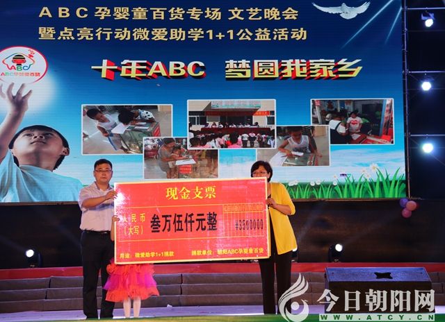 緊接著,ABC的代表王軍與共青團朝陽市委領(lǐng)導(dǎo)登臺,舉行了3.5萬元“微愛助學(xué)1+1”愛心善款交接儀式。緊隨其后的,是ABC的員工帶來的健美操表演《傳遞正能量,快樂齊分享》。自2006年以來,朝陽ABC孕嬰童百貨每年7月都推出“愛心節(jié)”公益活動,倡議顧客捐款,捐獻閑置衣物、圖書、文具等物品。通過國家慈善機構(gòu),將募集到的物資、捐款和企業(yè)捐獻的愛心基金,“一對一”地傳遞到貧困學(xué)生及貧困家庭的孩子手中,為家鄉(xiāng)的貧困孩子們奉獻愛心。