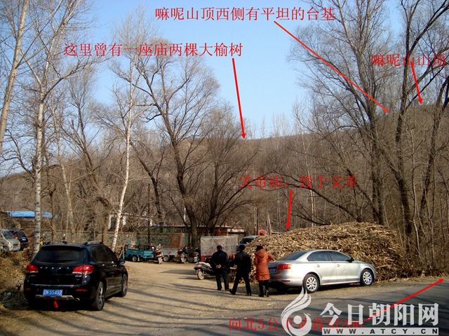 因為以前——具體年代已無從考證,每每舉行法會,在山頂上的平臺處念嘛呢。在山頂?shù)叫R之間拉上一行行風(fēng)馬旗,在平坦的臺基上鋪設(shè)坐墊兒,老喇嘛坐成一排,兩側(cè)架著長長的法號,香煙繚繞,鐘磬齊鳴,法鼓聲聲。法臺下圍坐一圈男女居士,反復(fù)誦念唵嘛呢叭咪吽。所以就因事命名嘛呢山。這座山北面一溝相隔,還有一座山,比這座略低,山頂更平。至今鋪設(shè)臺基念經(jīng)的痕跡猶在,也叫嘛呢山。兩座山峰朝東,都是蒼黑色,宛然兩個龍頭伏向小凌河。中間隔一條溝,東寬西窄,呈犁鏵狀,前人因形起名,叫鏵子溝。鏵尖處兩山又連在一起,像兩條龍尾交纏,尾巴甩向西南,和小孤山相連。