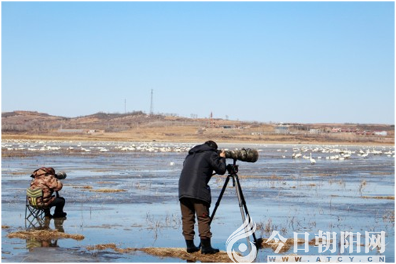 隨著天氣的轉(zhuǎn)暖,河水的冰層開(kāi)始融化,臨近水岸的濕地非常泥濘。我們不顧腳下的泥水,也顧不上鞋浸濕在泥水中,只想離天鵝群近點(diǎn)兒,再近點(diǎn)兒,然后拿起手中的相機(jī)去抓拍天鵝的精彩瞬間。令我遺憾的是我手中的相機(jī)不夠?qū)I(yè),鏡頭夠不到天鵝,這讓我很是著急,只好拍一些遠(yuǎn)距離的天鵝。看到那些專(zhuān)業(yè)攝影師設(shè)備齊全并且是有備而來(lái),他們穿著水靴,把三腳架支在泥水里,甚至有的帶著小凳子,坐在上面守候,隨時(shí)抓拍天鵝的精彩。當(dāng)我看到這種畫(huà)面時(shí),非常佩服他們的敬業(yè)精神,我用我的鏡頭記錄下了這人與自然和諧的美好畫(huà)卷。