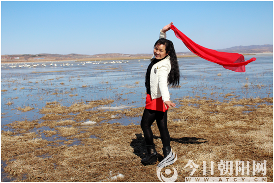 此時(shí),好想把天鵝群作為背景,把河岸邊作為舞臺(tái),跳一曲美麗的《天鵝湖》。雖然我們沒(méi)有真的跳起《天鵝湖》,但是我們的舉止也引起周?chē)^天鵝人的注意。大家都在看天鵝、拍天鵝,只有我們幾個(gè)以天鵝為背景,擺造型,拍人與天鵝的合影。這時(shí)發(fā)現(xiàn)一位攝影師在拍我們幾個(gè)人,我們就趁此機(jī)會(huì)主動(dòng)要求他幫我們幾個(gè)拍合影,在拍照的過(guò)程中,才得知他來(lái)自沈陽(yáng),是專(zhuān)門(mén)來(lái)拍天鵝的。