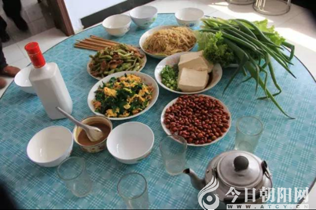 “吃飯啦——!”大娘一聲親切的叫喊,讓我們感覺如同回到了自己的家。只見老人家把早已備好的家常菜端上來——韭菜炒雞蛋、苣荬菜小蔥蘸大醬、鹽水豆腐、花生米、咸鴨蛋。雖然樣數(shù)不多,但量都不少。這的豆腐是鹵水點的,用本地井水做的。 這里的鴨蛋,油多色鮮,黃大味足。這里不用點菜,只需要報上幾個人就可以啦。兩位老人年歲已高,不習(xí)慣去集市上買菜,客人來了全部用自家產(chǎn)的食材,真可謂是真正的綠色食品。雖然老人家的菜肴都是素菜,可來這里用餐的人卻是最多的!因為在這里用餐,不僅讓人品嘗到家的味道,還頗有一番“開軒面場圃,把酒話桑麻”的詩意!