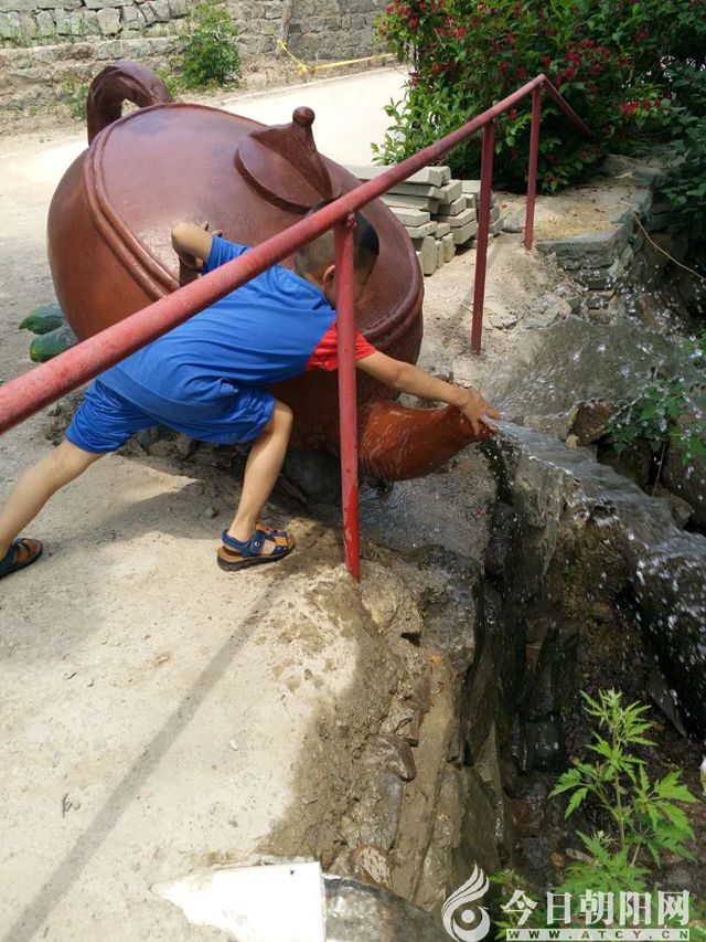 停好自行車(chē),信步往山里游覽。“老騎”我天生古怪,對(duì)眼前山水林壑倒無(wú)甚感冒,對(duì)小路旁一個(gè)大茶壺的造型創(chuàng)意很是欣賞,那頑童更皮的可愛(ài),手捂壺嘴截水流,可笑白費(fèi)力一場(chǎng)。