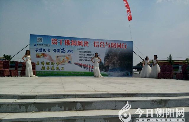 上午10時(shí),一行人來(lái)到了千佛洞景區(qū)。趕得好不如趕得巧,此時(shí)正逢朝陽(yáng)縣信用合作聯(lián)社與景區(qū)舉辦活動(dòng),“嫩模秀”恰好開(kāi)場(chǎng)。臺(tái)上“貓步”裊裊,風(fēng)情萬(wàn)種;臺(tái)下是一個(gè)個(gè)“壯夫”、“女漢”,騎行數(shù)十里仍不顯疲態(tài)的“強(qiáng)人”。陰柔美與陽(yáng)剛美在這里得到了相互映襯,可稱得上難得一遇的“風(fēng)景”。