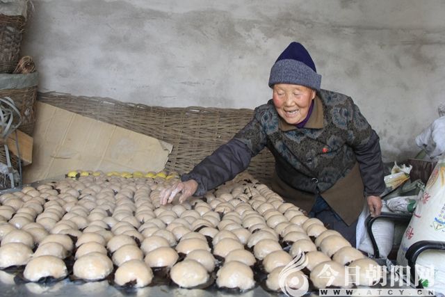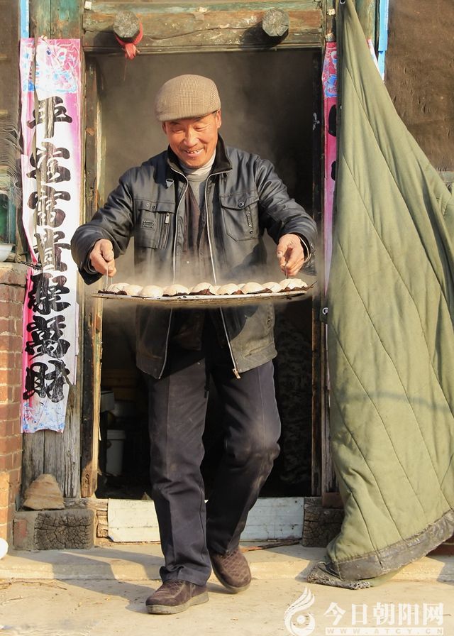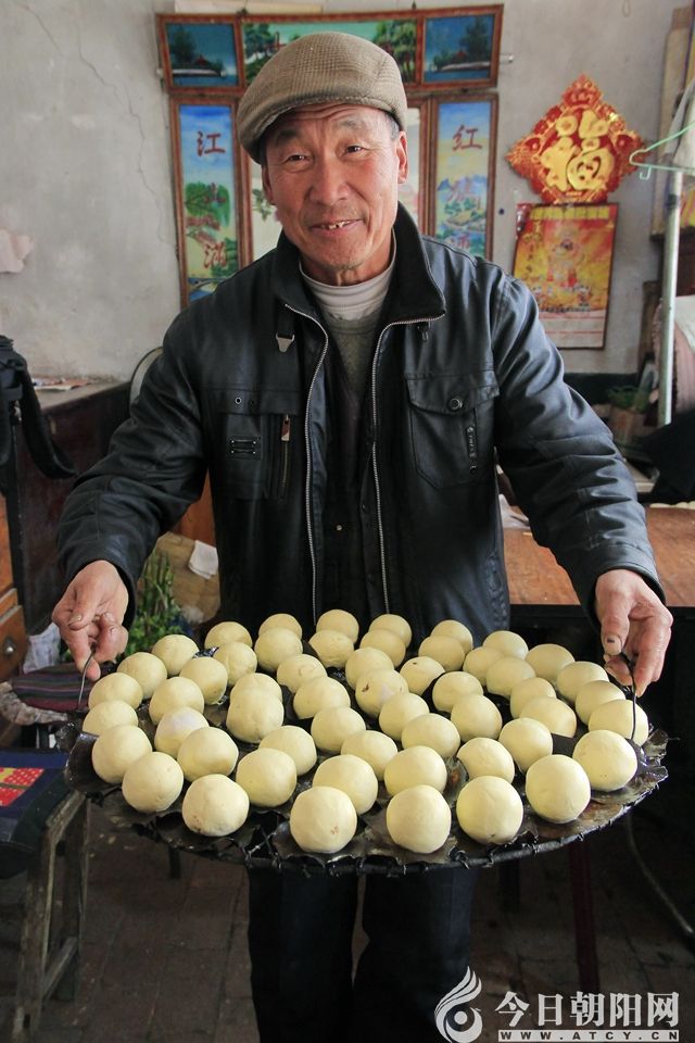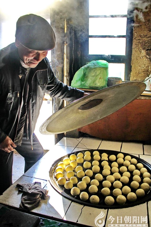 看著剛出鍋的粘豆包,臉上掛著難以掩飾的笑容。