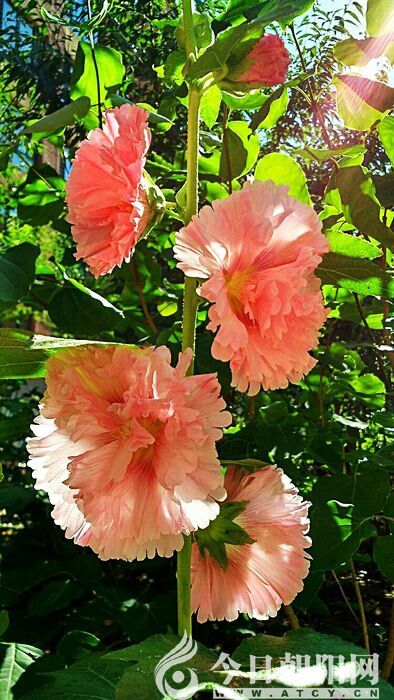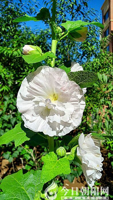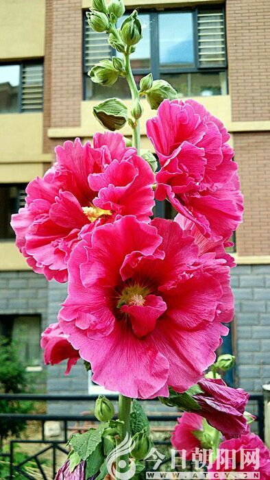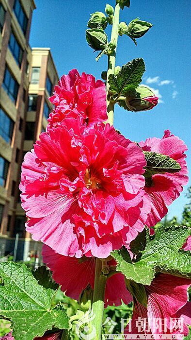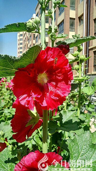 摘要:秫秸花,學(xué)名蜀葵,還有許多別名。我從小就叫它“秫秸花”,那是故鄉(xiāng)最常見最普遍的一種花,如今在小區(qū)里見到她,覺得格外的親切,所以就用手機(jī)記下了她的倩影。