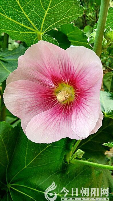 秫秸花,學(xué)名蜀葵,還有許多別名。我從小就叫它“秫秸花”,那是故鄉(xiāng)最常見最普遍的一種花,如今在小區(qū)里見到她,覺得格外的親切,所以就用手機(jī)記下了她的倩影。