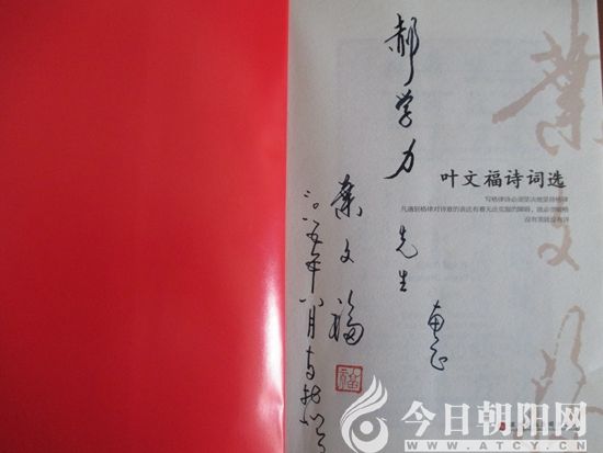 兒子郝學(xué)力購(gòu)買的《葉文福詩(shī)詞選》,并得到作者簽名