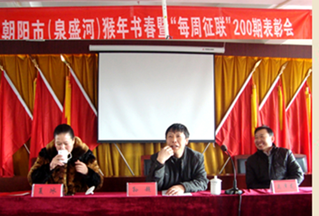 大會(huì)對(duì)于占生、王慶民、胡青海、張廣信、張振勇、任偉、聶小京、趙寶成等10人進(jìn)行表彰,頒發(fā)了《朝陽(yáng)日?qǐng)?bào)》每周征聯(lián)第101至200期活動(dòng)“十佳作者”證書(shū)。