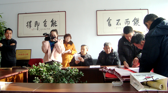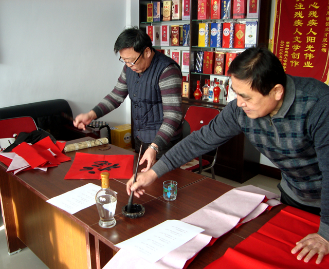 本市書(shū)法家辛向民、劉喜鵬、楊先生現(xiàn)場(chǎng)揮毫?xí)鴮?xiě)春聯(lián),為龍城大地帶來(lái)了迎春的氣息。《朝陽(yáng)日?qǐng)?bào)》社韓云波等兩位美女記者跟蹤采訪,讓與會(huì)的楹聯(lián)作者、書(shū)法家倍感活動(dòng)意義重大。