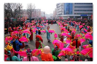 凌源的大秧歌還有一個(gè)特點(diǎn)就是扭的時(shí)間特別長(zhǎng),過(guò)去有一句民間俗語(yǔ)叫做“耍正月鬧二月,瀝瀝拉拉到三月”,甚至有的地方一直扭到春種,地種完了再接著扭。說(shuō)的是凌源人在上世紀(jì)初辦會(huì)扭秧歌的時(shí)間之長(zhǎng),雖然有些夸張,但是真實(shí)地描繪了凌源人樂(lè)觀向上的生活態(tài)度。上世紀(jì)五六十年代開(kāi)始農(nóng)村扭秧歌的時(shí)間逐漸縮短,但也能扭到正月十五之后甚至扭到二月二龍?zhí)ь^。進(jìn)入人民公社化之后,這種長(zhǎng)時(shí)間歌舞升平的做法被作為資產(chǎn)階級(jí)生活方式和不思進(jìn)取的生活態(tài)度被批判,文革后期的幾年扭秧歌被全面禁止,農(nóng)村出現(xiàn)長(zhǎng)時(shí)間沒(méi)有秧歌可看的局面。文革過(guò)后的七十年代末、八十年代初,改革開(kāi)放的東風(fēng)也吹綠了凌源農(nóng)村文藝工作這片荒草,上級(jí)放開(kāi)扭秧歌禁令并鼓勵(lì)農(nóng)村開(kāi)展形式多樣的文化活動(dòng),扭秧歌也得到恢復(fù),并層層舉辦培訓(xùn)班,引進(jìn)了外地扭秧歌的一些新元素,凌源大秧歌又紅紅火火地辦了起來(lái)??墒请S著老藝人身體條件原因逐步退出,熱心農(nóng)村文藝工作的年輕人越來(lái)越少,很多大秧歌表演技藝已經(jīng)失傳。加上電視的普及,麻將的泛濫,現(xiàn)在農(nóng)村春節(jié)期間很難見(jiàn)到扭秧歌的隊(duì)伍了,記得我最后一次在家鄉(xiāng)看秧歌是在1989年的正月。