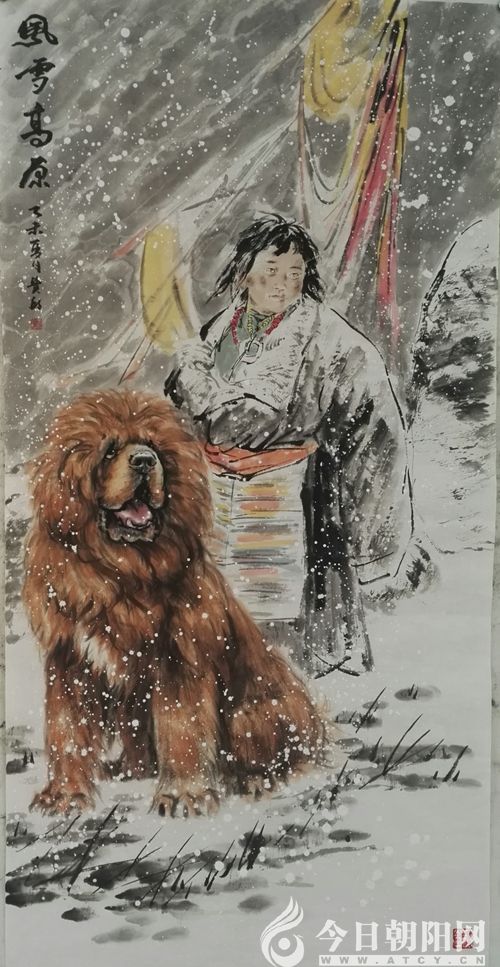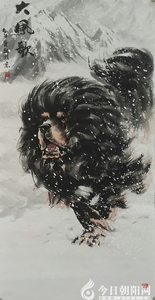 情到深處人孤獨(dú)。王貴邱是內(nèi)向含蓄的,他很少交際不善張揚(yáng)。他把大部分時(shí)間都用在作品創(chuàng)作上,太多的情感都定格在雪域高原。他畫(huà)獒的獨(dú)門(mén)絕技是通過(guò)寫(xiě)意來(lái)抒發(fā)個(gè)體的真實(shí)情感,亦即“真情”。蒼茫雪山一捻紅,縱橫馳騁寫(xiě)圣靈??v觀王貴邱走獸類國(guó)畫(huà)作品,最能震撼心靈的當(dāng)屬兼工帶寫(xiě)的藏獒作品?!堕犸L(fēng)萬(wàn)里》、《高原霸主》、《大風(fēng)之歌》都是他直抒胸臆的完美之作,獒的神態(tài)威猛無(wú)比,如追風(fēng)精靈,充滿了自然之美,力量之美。通過(guò)這些作品中我們看到了畫(huà)家的民族文化情結(jié)和對(duì)傳統(tǒng)國(guó)畫(huà)審美的價(jià)值取向。