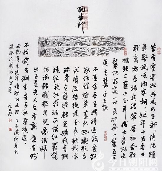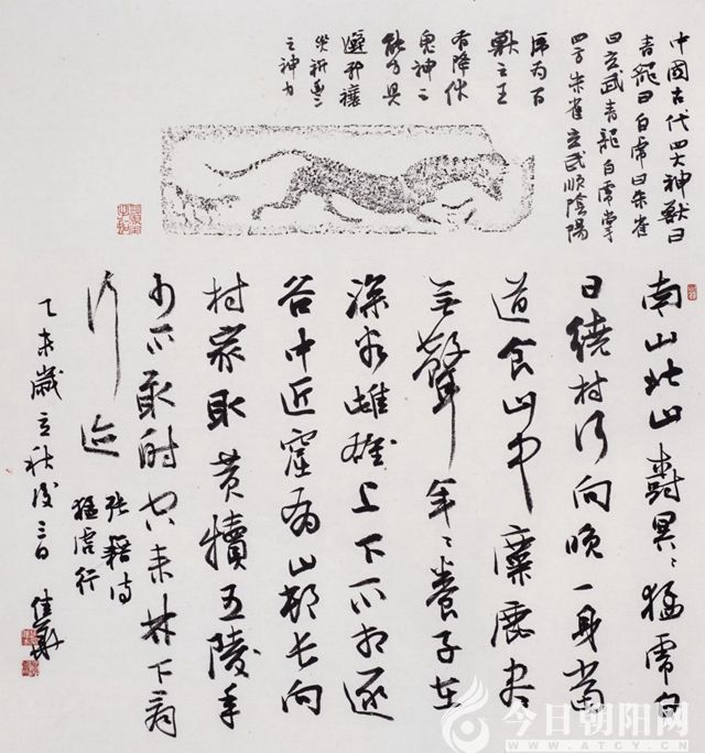 或者,你會(huì)說(shuō)他不務(wù)正業(yè),這是陋見(jiàn),他的博雜和泛覽,造就了他書(shū)法風(fēng)格的底色,對(duì)中國(guó)文化的厚積和觀照,托起他手中生花的妙筆。他對(duì)書(shū)法的理論滋養(yǎng)了創(chuàng)作,站在一種高遠(yuǎn)的境地,接續(xù)過(guò)去和當(dāng)下。閱讀之際,我感受到他的思想,他的書(shū)法所構(gòu)筑的是自己的一番文化風(fēng)景,世界就在他筆下展開(kāi),教人歡笑或者沉思。我發(fā)覺(jué)了他的“野心”,比如借著書(shū)法創(chuàng)作一個(gè)思想而不只是藝術(shù)的世界,讓思想借助藝術(shù)飛翔于人們的靈魂。