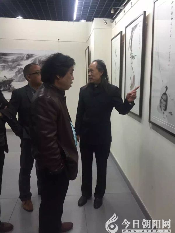 畫家雪鴻(左三)與參觀人員合影 雪鴻是江蘇徐州人,畢業(yè)于南京藝術(shù)學(xué)院美術(shù)系,現(xiàn)定居北京。雪鴻作為中國禪意畫最重要的代表,主張“心與物冥”主客合一的美學(xué)理念和藝術(shù)境界,主研“意象畫”“禪宗畫”以“儒、釋、道”的思想理念融會貫通與作品的創(chuàng)作和研究,他工山水,兼人物花鳥。其人既有豁達(dá)灑脫,虛靜恬淡的精神氣質(zhì),又有自由奔放的藝術(shù)想象力,作品蒼茫渾然中呈現(xiàn)出一片虛靜空靈的意境。在多年創(chuàng)作過程中,逐漸形成自己蒼勁雄渾,又不失清柄淡雅的藝術(shù)風(fēng)格。作品深受國內(nèi)外專家的肯定,同時被國內(nèi)收藏家以及俄羅斯、韓國、日本、臺灣等收藏家收藏。
