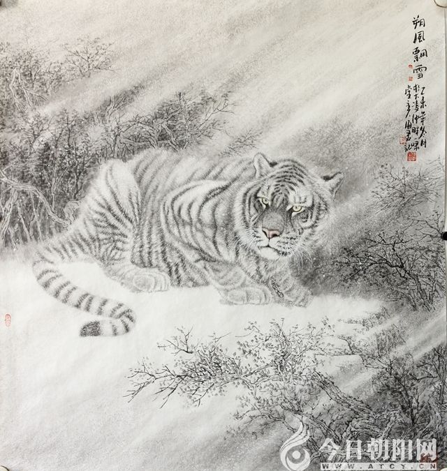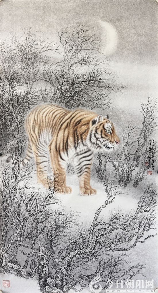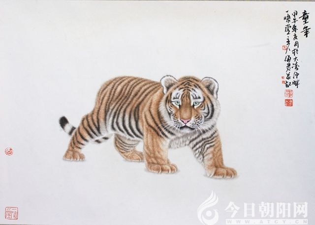 藝無止境。伊海軍是幸運(yùn)的,也是成功的。他創(chuàng)作之路還很長,隨著感悟和人生經(jīng)驗(yàn)的增多,相信他會(huì)有更多的優(yōu)秀作品問世。我們期待著,期待他在數(shù)年后不斷否定自己,真正扛起“遼西虎王”的大旗,在中國文學(xué)和哲學(xué)中尋找到新的突破口,實(shí)現(xiàn)“伊氏工筆虎”第三次、乃至第四次變法。