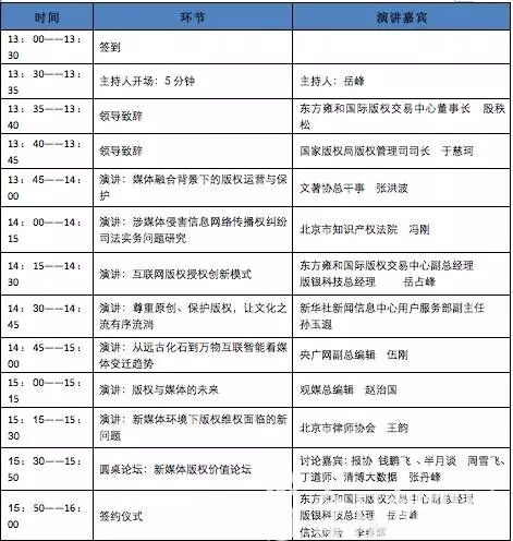 互聯(lián)網(wǎng)版權(quán)保護(hù)與運(yùn)營(yíng)新媒體論壇以“新媒體、新版權(quán)、新價(jià)值”為主題,旨在探討探討互聯(lián)網(wǎng)環(huán)境下各類新媒體在版權(quán)開發(fā)與運(yùn)營(yíng)方面的新思路、新方法。本次論壇由嘉賓演講和圓桌談?wù)撘约艾F(xiàn)場(chǎng)簽約等環(huán)節(jié)組成,論壇匯聚了政府領(lǐng)導(dǎo)、協(xié)會(huì)領(lǐng)導(dǎo),以及眾多的媒體專家和知名媒體人等,與會(huì)嘉賓將就新媒體環(huán)境下版權(quán)運(yùn)營(yíng)與保護(hù)、網(wǎng)絡(luò)侵權(quán)、互聯(lián)網(wǎng)版權(quán)授權(quán)模式、版權(quán)維權(quán)以及新媒體版權(quán)價(jià)值等主題進(jìn)行演講和經(jīng)驗(yàn)分享。