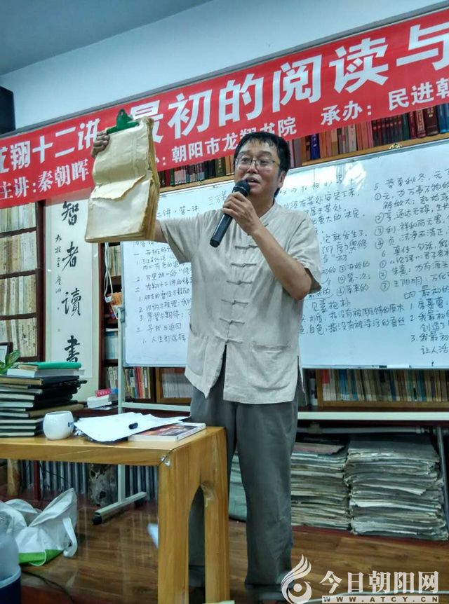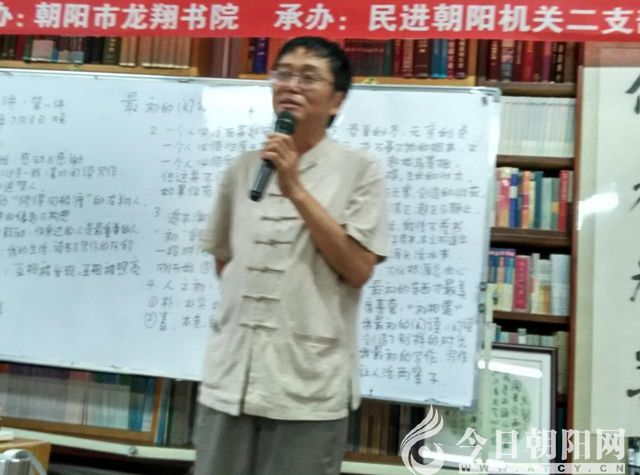 2016年7月8日,龍翔書院組織舉辦“閱讀寫作培訓(xùn)班”活動(dòng)。通知一經(jīng)發(fā)出,立刻得到許多文學(xué)愛好者的積極響應(yīng)。是文學(xué)的“繆斯女神”,是龍翔書院的縷縷書香,是主講人秦朝暉老師的文才、人品,深深吸引了來自朝陽的文學(xué)愛好者。40多人從四面八方趕來,在悶熱得有些喘不過氣的夏日夜晚,大家依然興高采烈。學(xué)員中,既有六十多歲的老者,也有十幾歲的學(xué)童,整個(gè)書院頓顯熱鬧,熱烈,熱情!