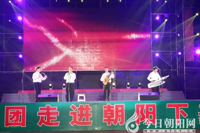 我團以“情系北國·美在東方”為主題的大型公益巡回演出活動,首站走進遼寧朝陽市,作為該市第五屆文化藝術節(jié)的開幕演出。11日晚,在當?shù)卮罅韬语L景區(qū)廣場上,為超過三萬名觀眾獻上國家級的歌舞盛宴。