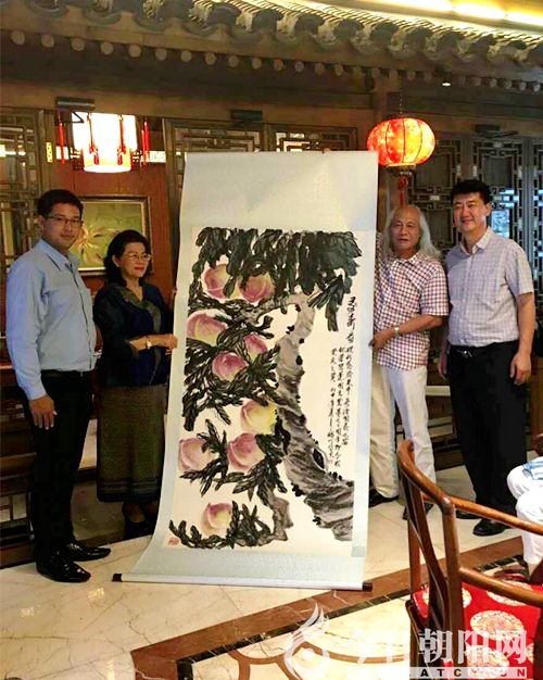 7月13日,著名國畫家楊竹先生創(chuàng)作的《多壽圖》由外交部安排,作為國禮正式轉(zhuǎn)交給來北京的泰國皇室特派代表。據(jù)悉,楊竹先生創(chuàng)作的這幅作品是受外交部的邀請,專門為泰國王登記七十周年大典及九十歲生日而作。泰王國普密泰發(fā)展基金會主席謝瑪麗向楊竹先生頒發(fā)了榮譽證書,表彰他為中泰友好合作的人文交流作出的杰出貢獻。