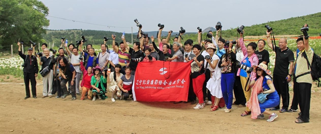 遼寧省攝影協(xié)會(huì)與凌源分會(huì)會(huì)員在凌源市熱水湯村百合谷合影