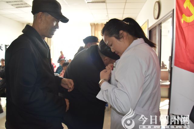 會上,雙塔區(qū)站南街道鵬程社區(qū)黨總支書記張素麗宣讀了《關(guān)于成立中共朝陽眼科醫(yī)院支部委員會》和《中共朝陽眼科醫(yī)院支部委員會書記選舉結(jié)果》的批復(fù)。緊接著,來自鵬程社區(qū)的老黨員為眼科醫(yī)院的4名新黨員佩戴了黨徽。值得一提的是,前來參加會議的社區(qū)老黨員中,有一位是建國前入黨的老同志。他用顫抖的雙手,把一枚鮮艷的黨徽交到了一位年輕黨員的手上,在莊嚴(yán)的氣氛中完成了一位老黨員激勵(lì)新黨員的夙愿。