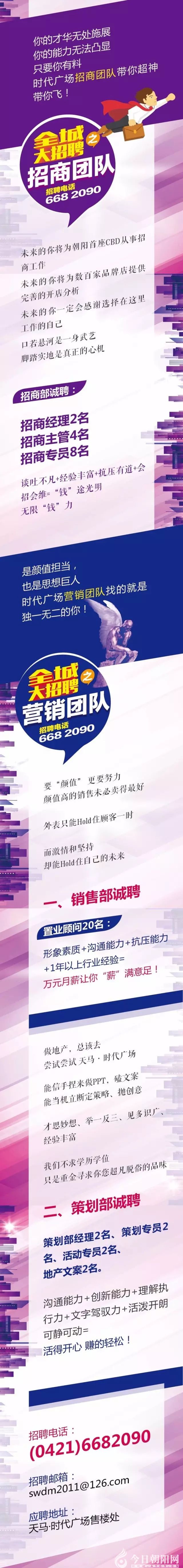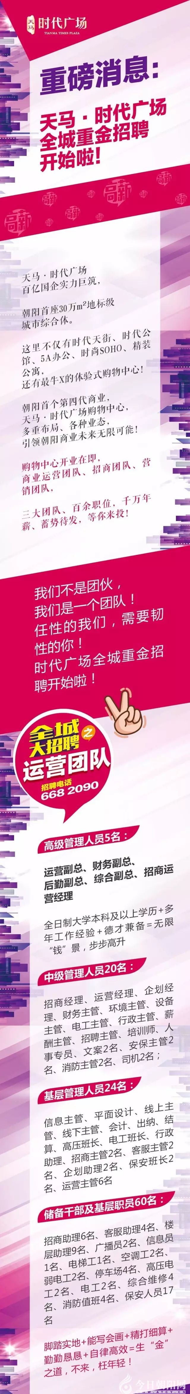 摘要:重磅消息:天馬·時(shí)代廣場全城重金招聘開始啦~內(nèi)含福利別錯(cuò)過 重磅消息:天馬·時(shí)代廣場全城重金招聘開始啦~內(nèi)含福利別錯(cuò)過 購房咨詢:0421-3100000。 來源:天馬時(shí)代廣場 【本網(wǎng)聲明】