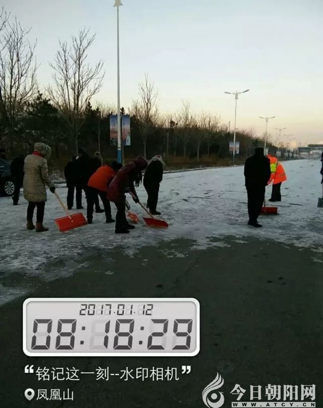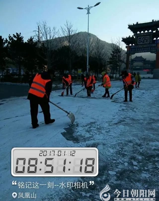 劉艷芹(左)率領(lǐng)員工在鳳凰山景區(qū)掃雪