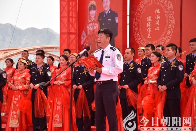 今天,在這開闊敞亮的萬人廣場(chǎng)上,在這碧波蕩漾的母親河邊,40對(duì)警營(yíng)新人心手相牽、喜悅縈懷地步入婚禮殿堂,開啟了人生新的篇章。這不僅僅是40對(duì)警營(yíng)新人的大事、喜事,更是朝陽(yáng)公安的大事、喜事。因?yàn)榍嗄昝窬浅?yáng)公安的未來,青年承載著朝陽(yáng)公安的夢(mèng)想與希望。市局黨委之所以把婚禮主題確定為“情系警營(yíng)、緣定今生”,旨在借助紅紅火火的中式婚禮,響應(yīng)習(xí)總書記弘揚(yáng)傳統(tǒng)文化的指示,讓大家根植厚重的三燕沃土,牢記使命,不忘初心;旨在為廣大青年民警圓一個(gè)浪漫、幸福、溫馨的青春夢(mèng);旨在為廣大民警創(chuàng)造一個(gè)“快樂工作、幸福生活”的和諧警營(yíng)新環(huán)境;旨在為推進(jìn)朝陽(yáng)公安事業(yè)、實(shí)現(xiàn)朝陽(yáng)公安夢(mèng),增添一股魅力四射、激情無限的源動(dòng)力。