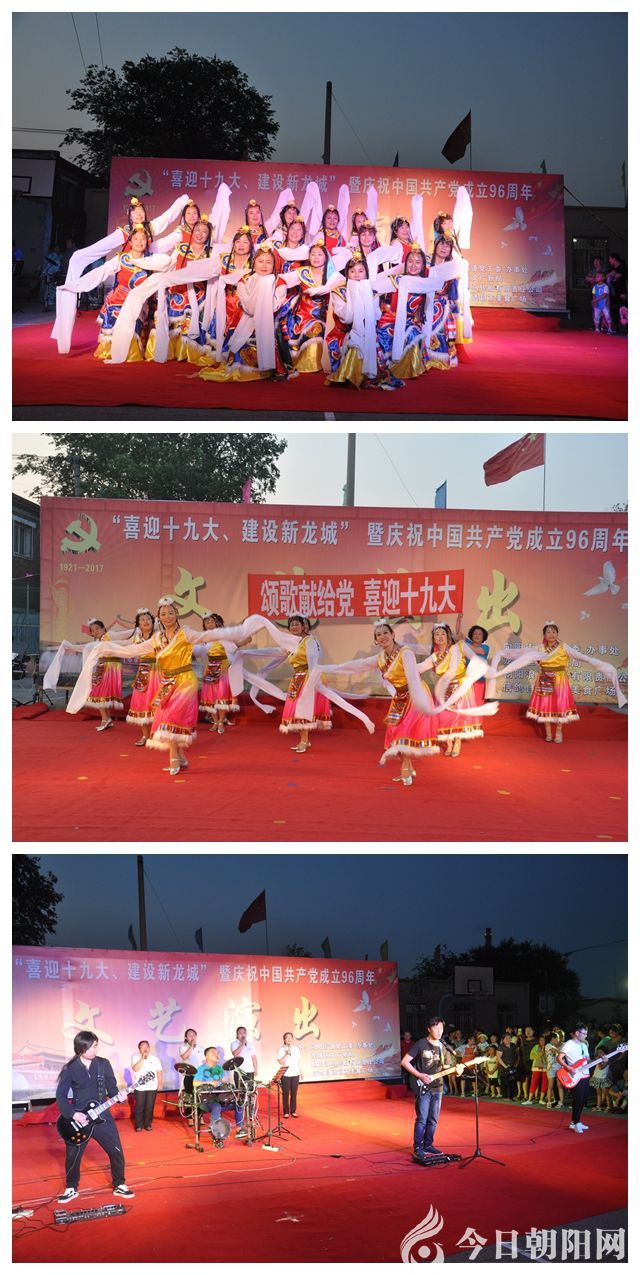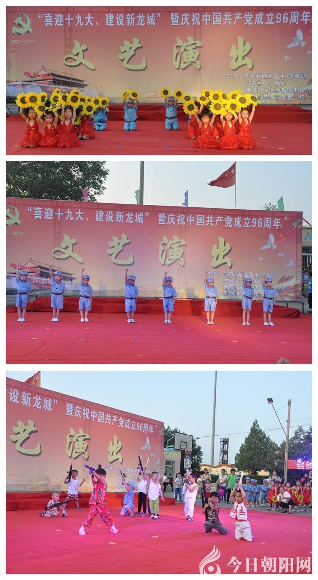 6月26日傍晚,遼寧省朝陽市龍城區(qū)向陽街道文化廣場人頭攢動、歌聲飛揚,美妙的樂曲在廣場上空久久地回蕩著,原來,由向陽街道與龍城區(qū)文廣新局、朝陽浪馬輪胎有限公司、信鴿自選超市美食廣場聯(lián)合主辦的“喜迎十九大、建設(shè)新龍城暨慶祝中國共產(chǎn)黨成立96周年文藝演出”正火熱進行。多才多藝的居民員工和龍城區(qū)文廣新局的專業(yè)演員同臺獻藝,熱情地謳歌了中國共產(chǎn)黨96年的奮斗歷程和豐功偉績,贊美了家鄉(xiāng)龍城翻天覆地的可喜變化。街道領(lǐng)導(dǎo)、駐街企業(yè)黨員代表與上千名居民群眾一同觀看演出,共同慶祝黨的96歲華誕。兩個多小時的精彩表演,為當(dāng)?shù)鼐用窈椭苓吶罕姭I上了豐盛的文化盛宴。