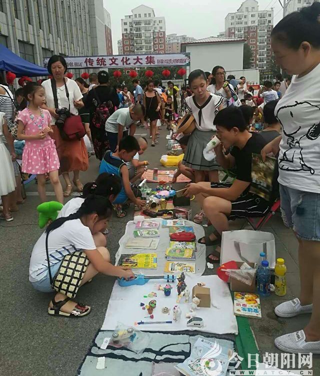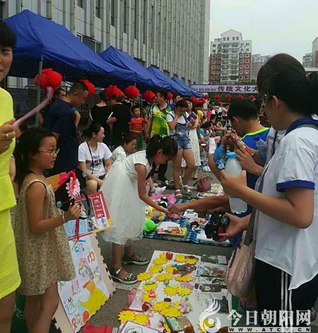 7月14日傍晚,遼寧省朝陽市青少年宮廣場(chǎng)人來人往,叫賣聲歡笑聲在廣場(chǎng)上空久久回蕩。由共青團(tuán)朝陽市委員會(huì)主辦,朝陽市青少年宮與朝陽市長(zhǎng)青路小學(xué)聯(lián)合承辦的“傳承古文化,塑造中華魂,實(shí)現(xiàn)中國夢(mèng),看我紅山娃”暨朝陽市長(zhǎng)青路小學(xué)走進(jìn)青少年宮趕傳統(tǒng)文化大集教育實(shí)踐活動(dòng)在這個(gè)盛夏火熱進(jìn)行。