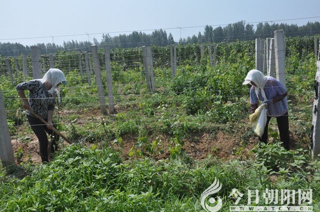 “綠油油的葡萄枝繁葉茂,珍珠翡翠般的葡萄點(diǎn)綴在綠葉叢中,十分養(yǎng)眼;葡萄架下,30多名村民正揮汗如雨地培土、追肥,滿是汗珠的臉上,掛滿了欣慰的笑意!”7月16日,筆者到遼寧省朝陽(yáng)市龍城區(qū)大平房鎮(zhèn)西街村采訪時(shí),親眼目睹了這一激動(dòng)人心的勞動(dòng)場(chǎng)面。據(jù)了解,在葡萄園務(wù)工的大多是村剩余勞力和貧困村民,根據(jù)分工,日薪60至100元不等。一位中年婦女笑著對(duì)筆者說(shuō):“這點(diǎn)活對(duì)我們農(nóng)民來(lái)說(shuō)不算啥,就是天氣太熱了,但是,我們非常感謝村干部派的美差,租用地給錢(qián),在這干活還給錢(qián),一年下來(lái),能賺個(gè)萬(wàn)八千的。”言語(yǔ)中,折射出了發(fā)自內(nèi)心的喜悅!