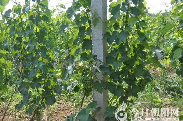 葡萄是見(jiàn)效最快果木之一,葡萄鮮果汁多味美,深受廣大消費(fèi)者青睞。具有高產(chǎn)、穩(wěn)產(chǎn)等優(yōu)勢(shì),一般當(dāng)年種,第二年即可量產(chǎn),三年大豐收,若管理精細(xì),一般沒(méi)有大小年現(xiàn)象,產(chǎn)量相當(dāng)穩(wěn)定。向科技要效益,是時(shí)下比較流行的一句時(shí)髦詞。理事長(zhǎng)趙玉峰深知這個(gè)理。他聘請(qǐng)?jiān)谶|寧省水土保持研究所果樹(shù)室工作過(guò)的李中齊任技術(shù)員,李中齊有10多年的實(shí)踐經(jīng)驗(yàn),技術(shù)全面,從苗木種植到立桿架線、后期管理,工作起來(lái)一絲不茍,葡萄長(zhǎng)勢(shì)十分喜人。筆者發(fā)現(xiàn),大片葡萄足有50畝,那么,剩余的150畝地,合作社作啥打算呢?趙玉峰解釋說(shuō):剩余的土地將陸續(xù)栽植葡萄,擴(kuò)大再生產(chǎn)。但因土地貧瘠,需要培土,再加上資金缺口,暫時(shí)還不能全部栽植。150畝地種的是向日葵、大蔥等農(nóng)作物,合作社精細(xì)管理,收成也不錯(cuò)。