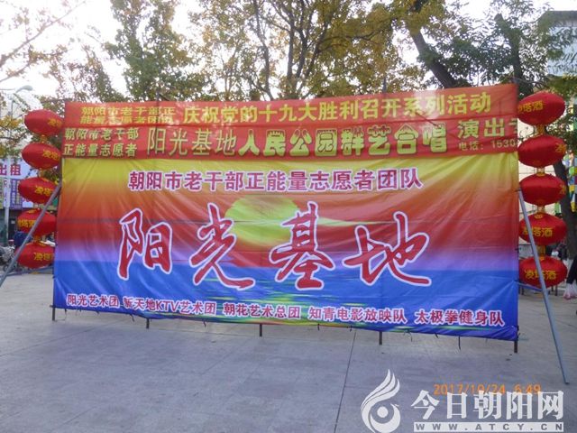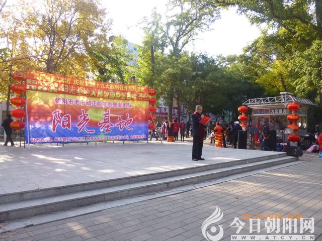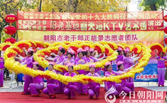 在黨的十九大勝利閉幕之際,遼寧省朝陽市老干部正能量志愿者陽光基地旗下的文藝健身團(tuán)隊(duì),近兩千人在朝陽人民公園舉行了為期四天的慶?;顒?dòng)。志愿者總部大隊(duì)長(zhǎng)和老干部局領(lǐng)導(dǎo)以及志愿者顧問團(tuán)的老同志不顧天氣寒冷,趕到現(xiàn)場(chǎng)參加活動(dòng)。
