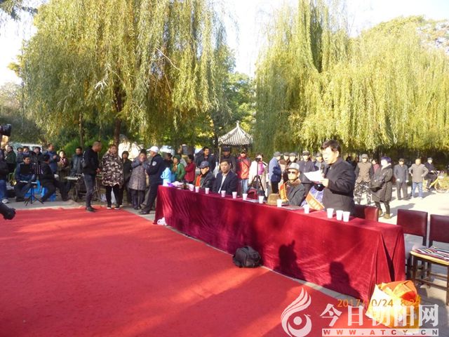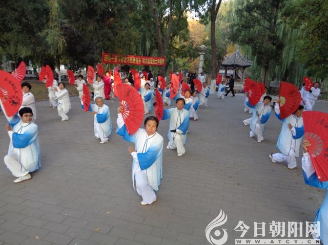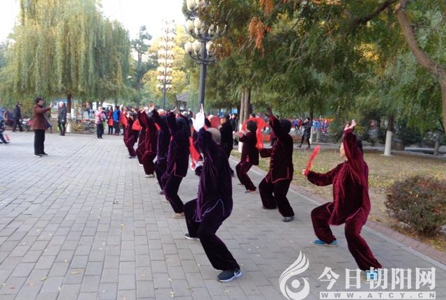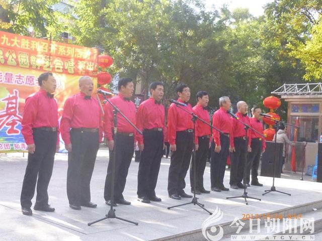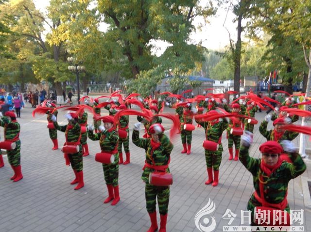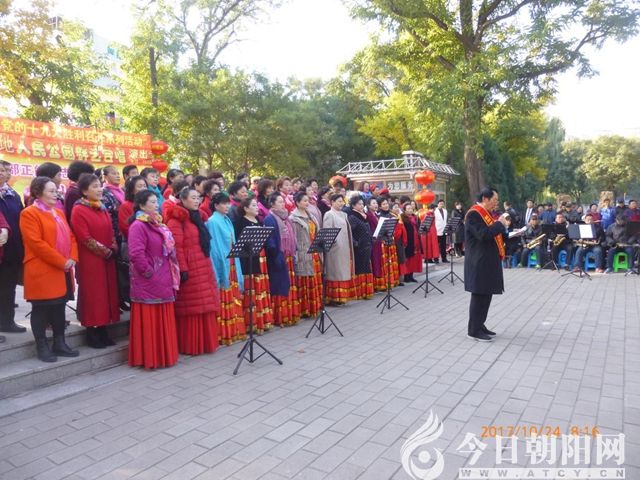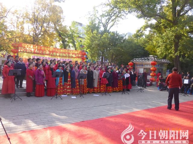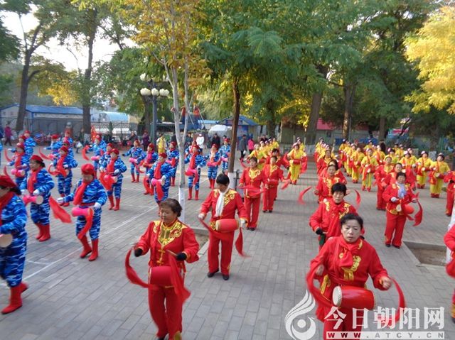 10月24日至27日四天里,來自朝陽人民公園群藝合唱團(tuán)、朝花藝術(shù)總團(tuán)、新天地KTV藝術(shù)團(tuán)、知青電影放映隊(duì)、武術(shù)協(xié)會(huì)、太極拳健身隊(duì)的老人們,身著鮮艷整齊的隊(duì)服和民族服裝,從四面八方匯聚到朝陽人民公園。園區(qū)內(nèi),在“慶祝黨的十九大勝利召開系列活動(dòng)”大紅條幅下,站有花鼓、秧歌、太極拳、太極扇、廣場(chǎng)舞、武術(shù)分隊(duì),這些團(tuán)隊(duì)同時(shí)表演。公園北門廣場(chǎng),俊美的秧歌隊(duì),高蹺花轎美丑角,龐大的健身操舞隊(duì),同進(jìn)同退、忽左忽右、整齊劃一;太極拳舒緩柔美,太極扇飄逸瀟灑,武術(shù)陽剛威儀。游樂場(chǎng)旁的公園南廣場(chǎng),紅黃藍(lán)綠四只花鼓隊(duì),穿梭如織、鼓聲陣陣、紅綢飛揚(yáng)。飛禽籠旁到木化石園,廣場(chǎng)舞隊(duì)衣袂飄逸、長(zhǎng)袖凌空,半個(gè)公園彩旗飄飄、樂曲飛揚(yáng)、歡歌勁舞,成為歡樂的海洋。公園東門是主場(chǎng),各個(gè)社團(tuán)在這里用歌聲、秧歌、戲曲、武術(shù)等多種形式的表演,向黨表達(dá)了感恩之情。