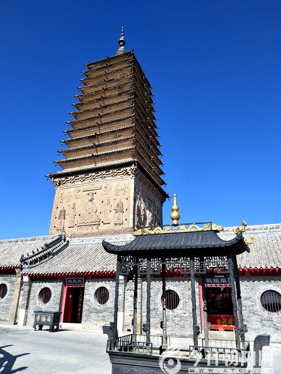 到了中寺——云接寺,最先進(jìn)入眼簾的就算那座高聳的十三級(jí)的摩云塔,老遠(yuǎn)就聽到山頂?shù)娘L(fēng)吹動(dòng)塔上串串銅鈴的聲響。這里香火繚繞,經(jīng)過時(shí)還有人念經(jīng)超度,頓時(shí)心里升起一種神秘感。最可笑的是我們上來時(shí),有個(gè)手拿紅布條的中年婦女直奔王大姐來,口中說著吉祥好話,大姐笑著接受,可是沒有給賞錢。雖然耿子一看情勢(shì)不好趕緊幾步躲到東面去看景兒。哪里想到另一個(gè)婦女追過去就給她系上紅布條,說她如何富態(tài)有福樣兒,還是要賞錢。不得已,耿子只好掏出兩個(gè)鋼镚兒,說那是自己坐公交車的錢。這種強(qiáng)行推銷的方式容易引起有人反感,可是人家抓住了每個(gè)人求吉利的心理也實(shí)在讓人怯不開面子。