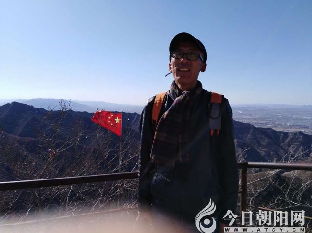 最后是去上寺——華嚴(yán)寺。這里有臥佛一尊,新修的佛像一尊,香火鼎盛。拾階而上,兜兜轉(zhuǎn)轉(zhuǎn)就到了鳳冠,也就是鳳凰山的至高點(diǎn)。那兒有一座市電視臺(tái)的傳輸接收站。站在高端,近處有五星紅旗迎風(fēng)招展,讓我們滿心熱血沸騰著紛紛與國(guó)旗拍照留念;南面群山巍峨,層林盡染,秀美如畫,腳下下山的小道曲折蛇形,白色真切清晰可辨;西面就是樓宇如織的朝陽(yáng)城,近觀河水如帶,一橋飛架;北面山谷猶如世外桃源,散布的人家如在群山懷抱。遙想登臨此處,春來綠樹繁花如簇錦;夏來蟬噪鳥鳴綠蔭蔥蘢;秋之絢爛五彩,如詩(shī)如畫;冬天呢,應(yīng)該有雪吧。我的那些大姐此刻就在山頂上大聲喊:“鳳凰山,我來了”。一時(shí)歡呼雀躍,我為之狂,互相拍照留念。不知道安靜伏在眼前巖石邊上的那只鳥兒可否受到驚擾呢!一靜一動(dòng)更照見我們的浮躁。