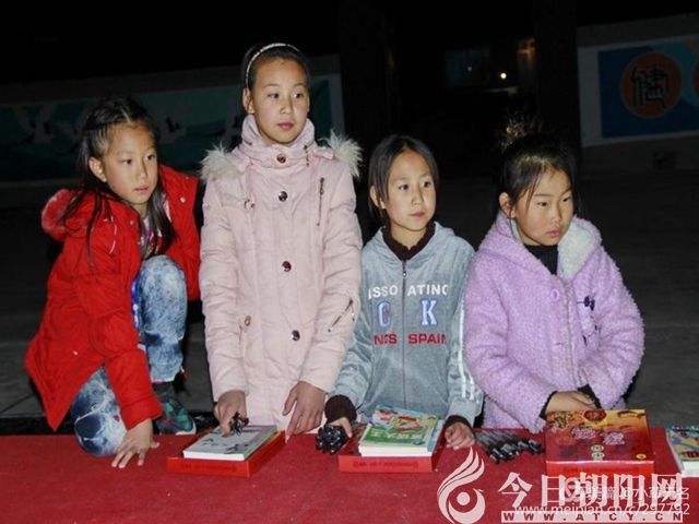 演出前,錦州文學(xué)社的朋友們?yōu)楹⒆觽兙栀浟讼笃?、畫筆、中性水筆、圖書。